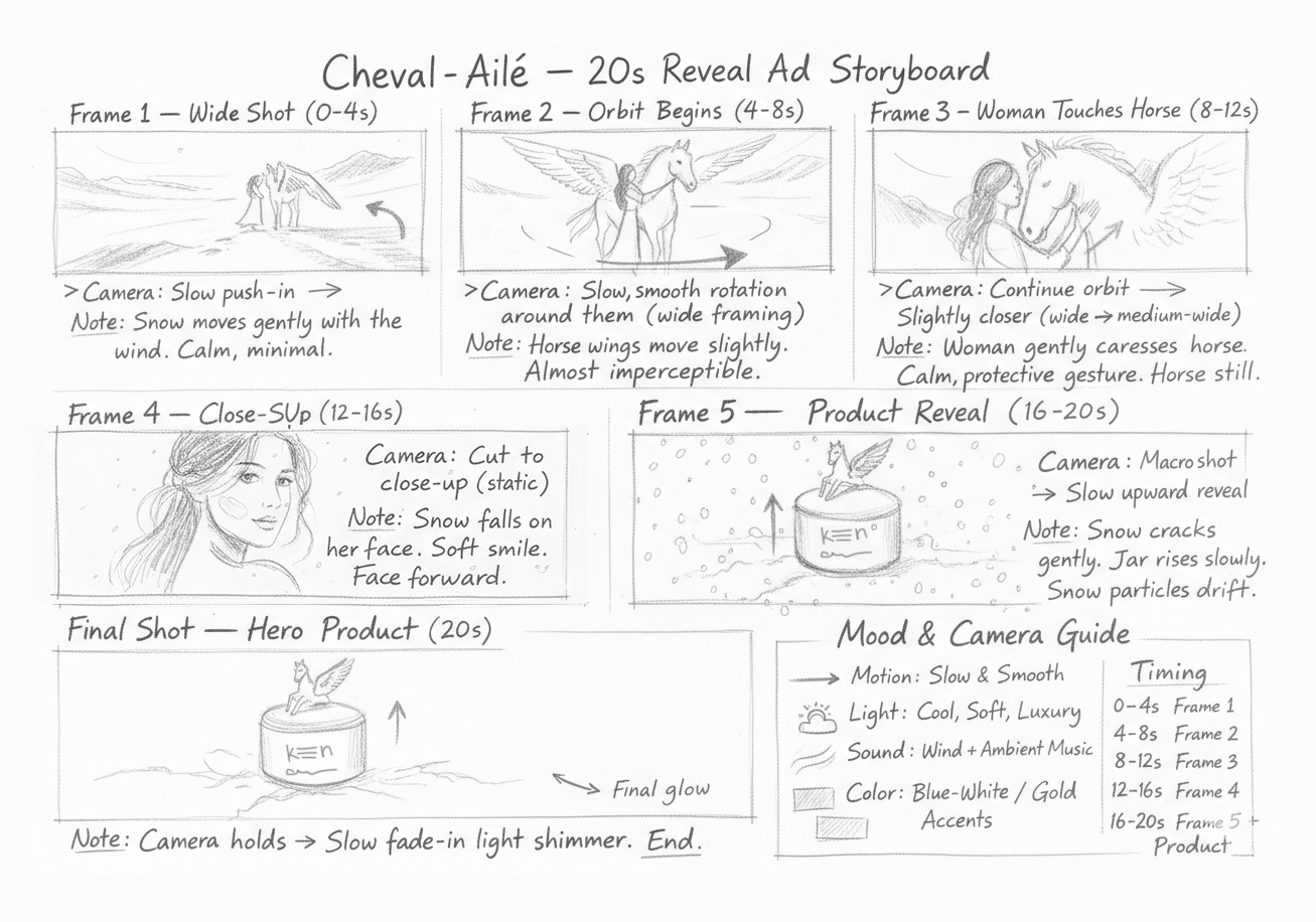 The process began with a human and conceptual reflection on symbolism and brand narrative, and was later extended through the creation of visuals and video using AI as a tool serving artistic intention.