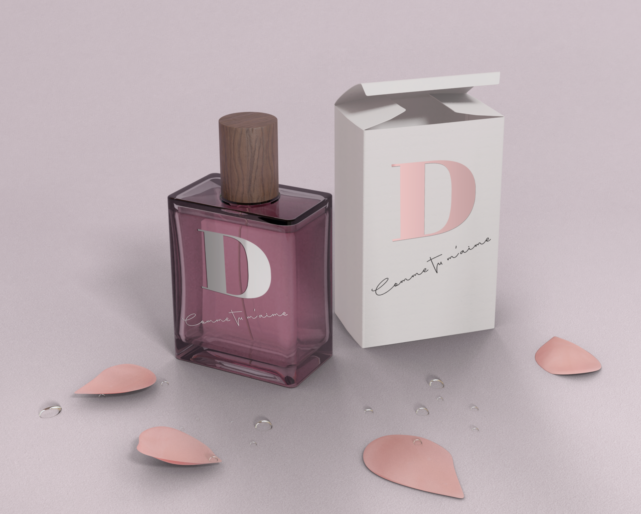 Parfum de l’Aimé is a fragrance brand offering perfumes for both women and men. My role was to create the brand name, packaging, and overall branding. I chose the name “Parfum de l’Aimé” for the brand itself, and selected sub-brand names such as “Si tu m’aimes” for women and “Comme tu m’aimes” for men. The terms “l’Aimé” and “Si tu m’aimes” immediately evoke feelings of affection, love, and romance — perfectly suited for products like perfumes, which are often closely connected to emotions.